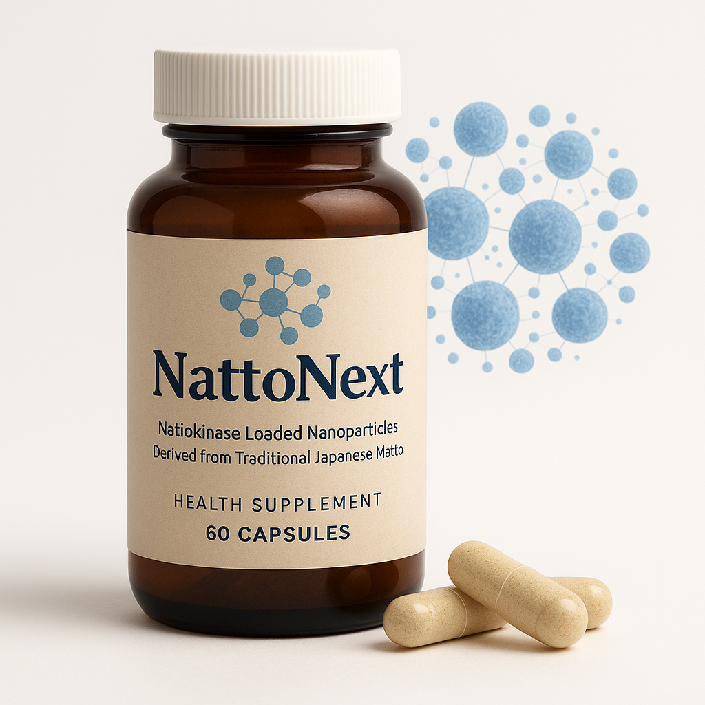NattoNext is a breakthrough health supplement powered by nattokinase-loaded nanoparticles derived from traditional Japanese natto. Using advanced nanotechnology, it enhances enzyme stability and absorption, supporting healthy blood flow, heart function, and overall vitality. Combining centuries-old fermentation wisdom with modern innovation, NattoNext delivers the natural power of natto in its most effective, bioavailable form.