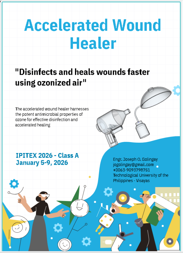 The accelerated wound healer is a portable medical device that utilizes the healing properties of ozone to disinfect wounds and accelerate their healing.