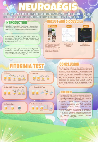 Alzheimer’s disease (AD) accounts for nearly 70% of the world’s 55 million dementia cases, a figure projected to double by 2050. Conventional AD therapies are limited by the blood–brain barrier (BBB), which restricts drug delivery to the brain. This study developed a Smart Nose-to-Brain in situ Gel Nanostructured Lipid Carrier (NLC) system incorporating Aegle marmelos extract to enhance antioxidant and neuroprotective efficacy via direct nasal-to-brain transport.