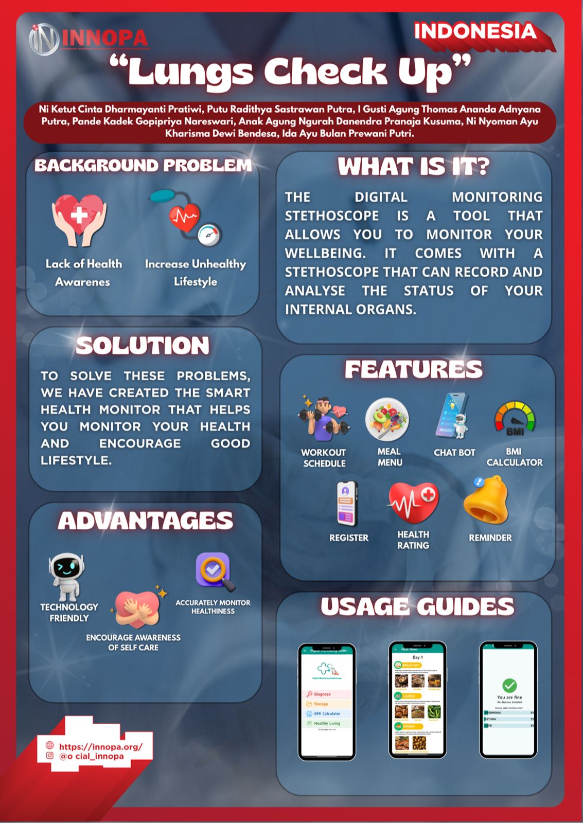LUNCHUP is a smart digital stethoscope that records internal organ sounds with high clarity. Its automatic analysis feature identifies abnormal patterns, improving diagnostic accuracy and early disease detection.