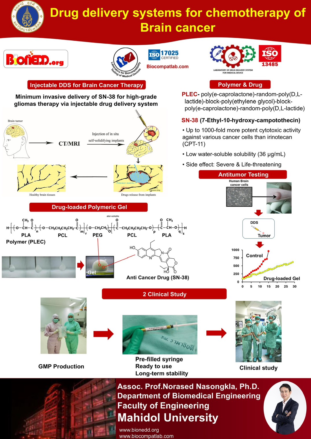 The drug-delivery system in this presentation is prepared by dissolving the polymer and an anticancer drug in glycofurol. Outside the body, this drug-delivery system exists as a polymer solution. When injected into a tumor, glycofurol gradually diffuses out while water diffuses into the polymer mass, causing coagulation of the polymer into a solid matrix. The anticancer drug becomes entrapped inside and is released at a controllable rate. In practical use, this drug-delivery system can be loade