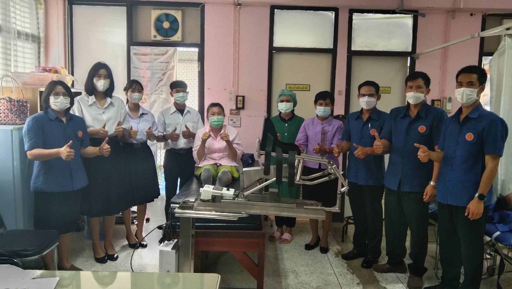 The study of the machine aimed to: 1) to design and create the machine, 2) to assess its efectiveness, and 3) to evaluate patient satisfaction. Results showed: 1) The stainless steel machine measures 30 cm in width, 80 cm in length, and has an adjustable height of 75-113 cm. 2) Patients did the passive exercises 4 times in 30 mintues with the machine, compared to 5 times with the physiotherapists. 3) Most elderly patients were satisfied, agreeing it met its goals and has commercial potential.
