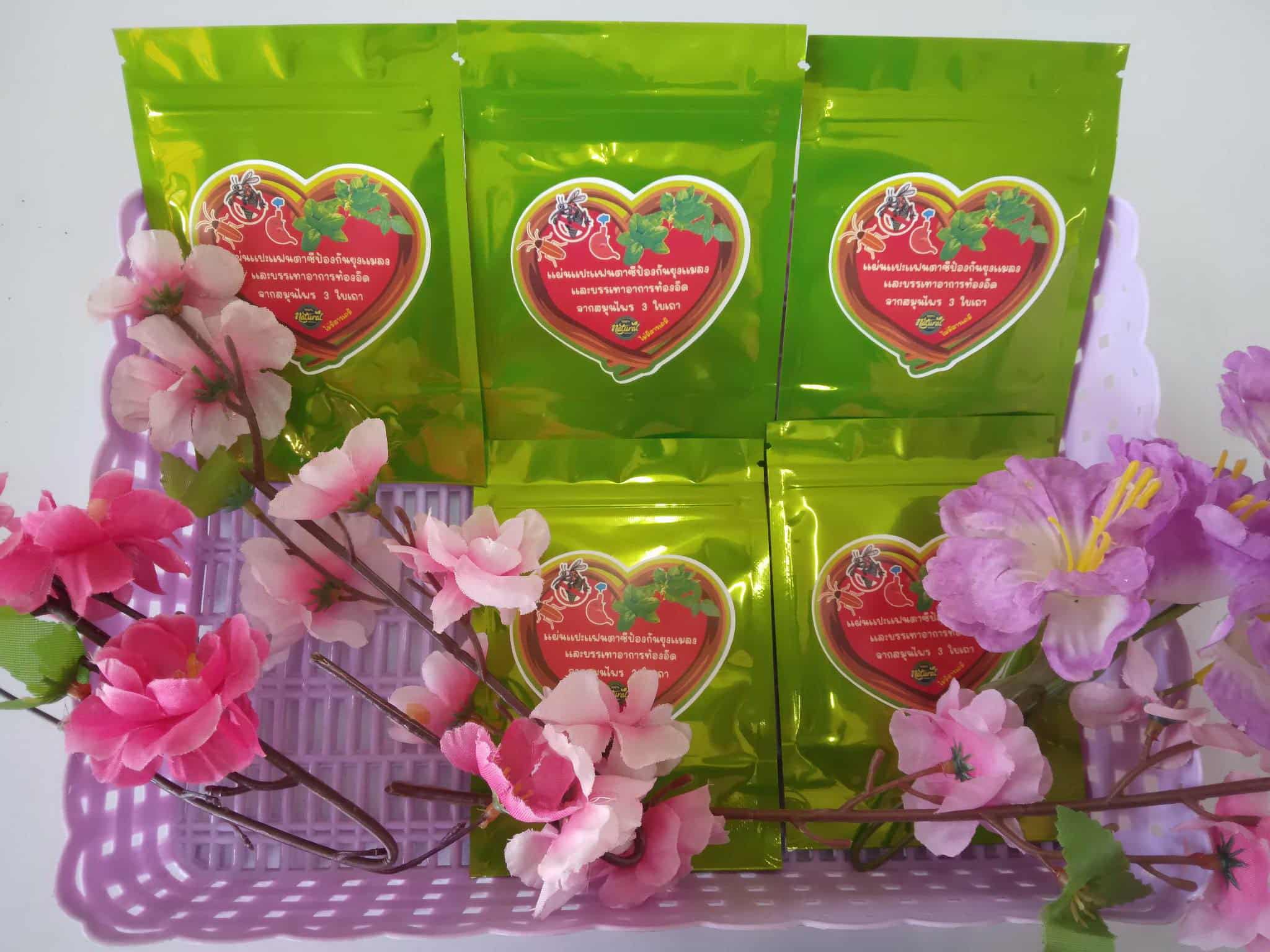 Invention Description: Select and wash holy basil, sweet basil, and lemon basil leaves. Steam-distill them by heating with water and collecting the condensed essential oil under an ice-cooled inverted lid. Allow the oil to cool, then transfer it into an amber bottle. Mix 50 ml of eucalyptus oil with the basil oil, cool, and bottle the mixture. Apply 1–3 drops onto each patch, pack them into pouches, and label the final product.