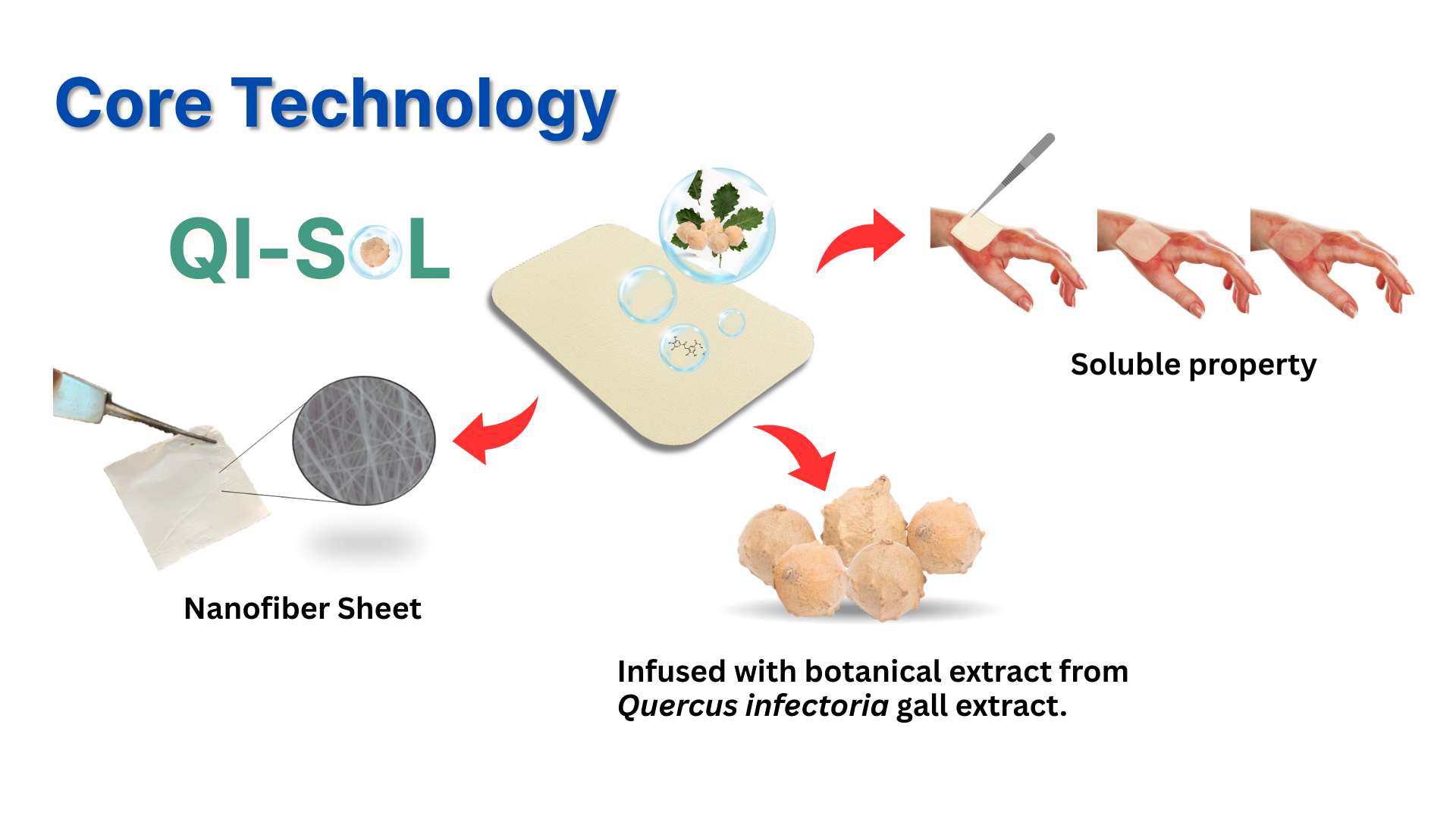 QiSol is an innovative wound-care product designed for simple, safe, and convenient management of chronic wounds. It integrates a water-soluble drug-delivery film with natural antibacterial and wound-repairing properties from Quercus infectoria gall extract. Developed under the “Easy-to-Use” concept— just apply, dissolve, and act—QiSol is eco-friendly and ideal for daily use.