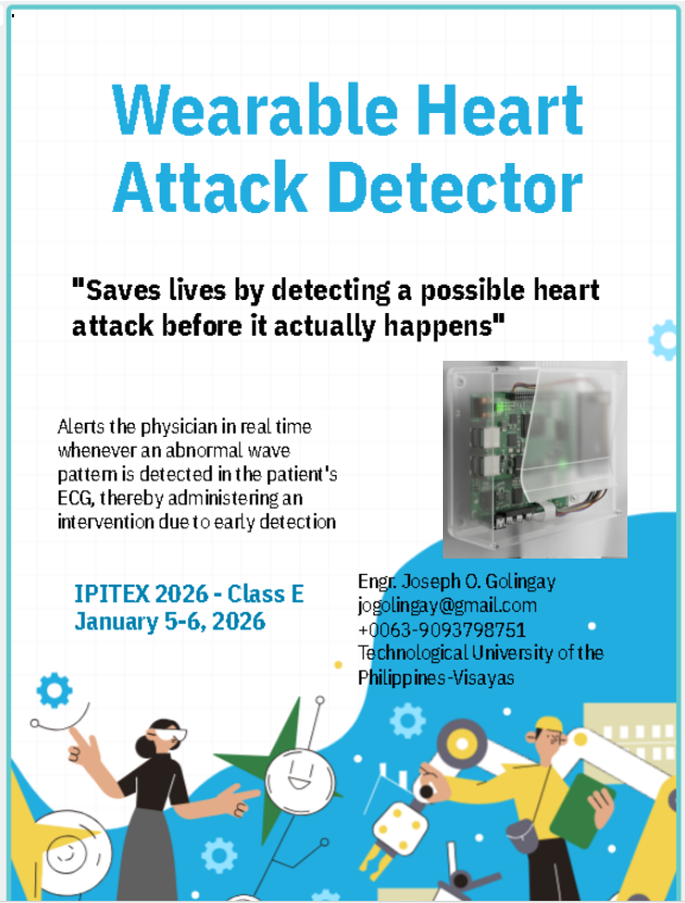a wearable heart attack detector that could save lives by detecting possible heart attacks before they actually occur through timely intervention of attending physicians due to real time information. The wearable heart detector will alert the physician in real time whenever an abnormal wave pattern is detected in the patient’s electro-cardiogram, thereby an intervention will be administered to the patient due to early detection.