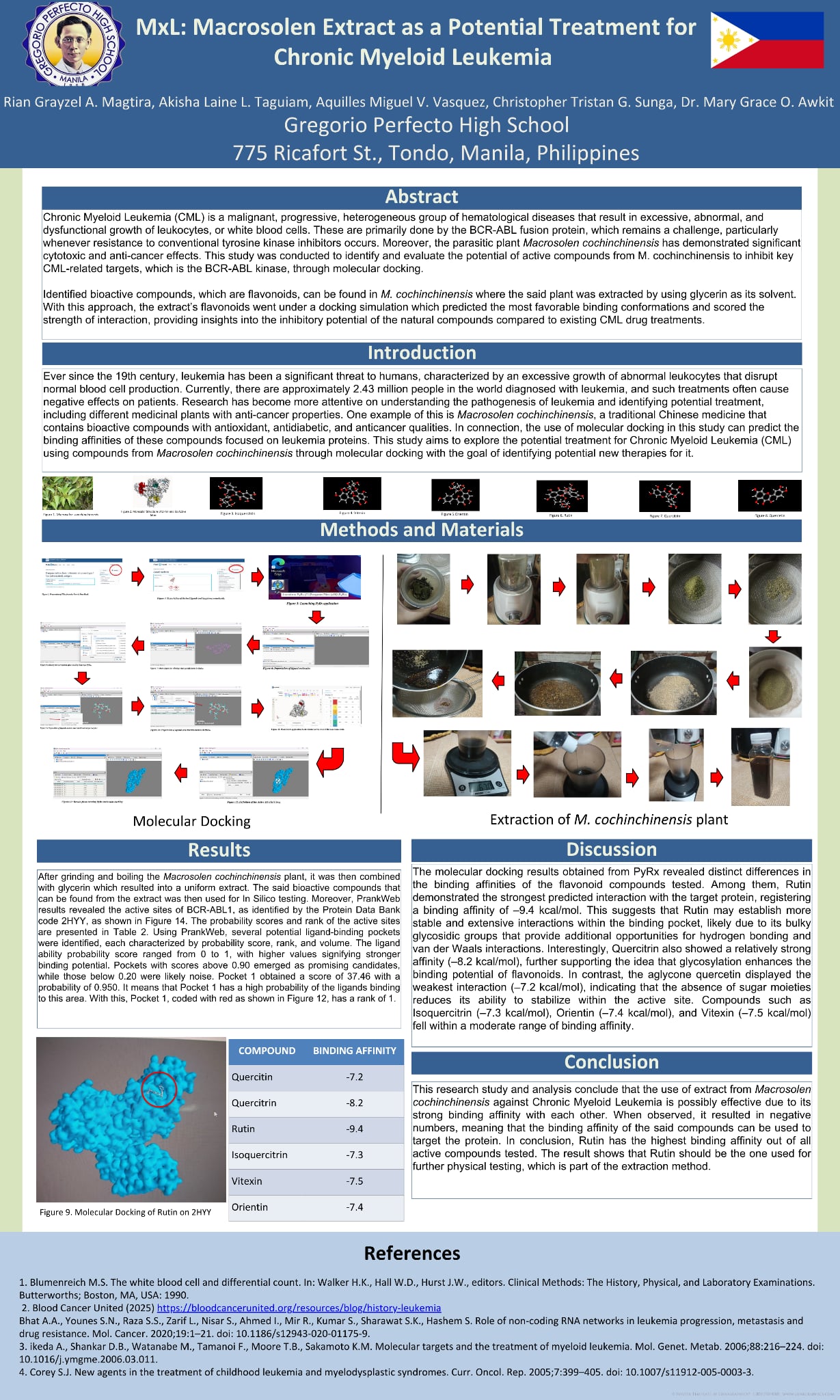This project introduces the study of using the extract from Macrosolen Cochinchinensis as a possible treatment for Chronic Myeloid Leukemia (CML) via In Silico Molecular Docking process.