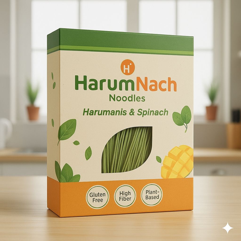 HarumNach is an innovative rice noodle product developed using Harumanis mango and spinach flour to enhance its nutritional and sensory qualities. The addition of Harumanis provides natural sweetness, aroma, and vitamin C, while spinach flour contributes protein, fibre, and iron. These ingredients improve colour, texture, and overall acceptability compared to traditional rice noodles. HarumNach offers a healthier alternative with higher nutritional value.