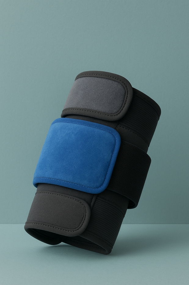 This wrist support integrates cold and heat therapy within a single wearable structure, enabling users to switch between temperature modes according to injury stages or comfort needs. Using insulated gel packs and a controlled thermal layer, the design enhances rehabilitation efficiency while maintaining ergonomic conformity. It targets athletes, office workers, and individuals with chronic wrist strain, emphasizing portable and user-friendly pain management.