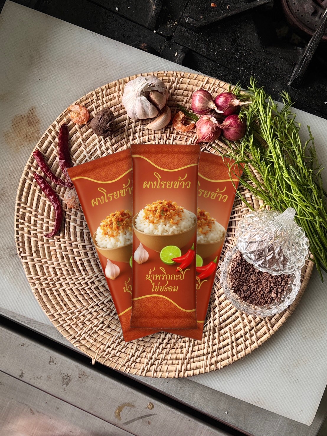 ผงโรยข้าวน้ำพริกกะปิไข่เจียวชะอม คือการย่อรสชาติของเมนูไทยสุดคลาสสิกให้อยู่ในรูปแบบผงโรยที่สะดวก พร้อมเสิร์ฟความจัดจ้าน ครบรส เปรี้ยว–เค็ม–หวาน และกลิ่นหอมเป็นเอกลักษณ์ของน้ำพริกกะปิแท้ๆ ผสานความมันหอมของไข่เจียวและกลิ่นชะอมซึ่งเป็นเสน่ห์เฉพาะตัว ให้คุณเพลิดเพลินกับรสชาติแบบไทยดั้งเดิมได้ง่ายๆ เพียงโรยลงบนข้าวสวยร้อนๆ เมนูผัดทอด หรือของว่างต่างๆ ผลิตจากวัตถุดิบคุณภาพ ผ่านกระบวนการทำให้แห้งและบดละเอียด เพื่อคงรสชาติ ความหอม และความกลมกล่อมของน้ำพริกกะปิแบบต้นตำรับ เหมาะสำหรับคนรักอาหารไทยที่ต้อง