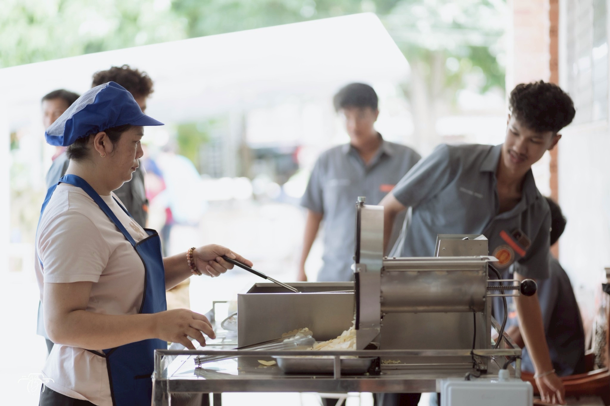 The semi-automatic durian slicing and frying machine integrates three systems—slicing, frying, and oil-removing—within a single unit. The innovation is easy to construct, affordable, and can be made independently. Testing shows that it increases convenience in preparing durian for frying, improves safety during operation, and streamlines the overall process. Users report a high level of satisfaction with the machine’s performance and efficiency.