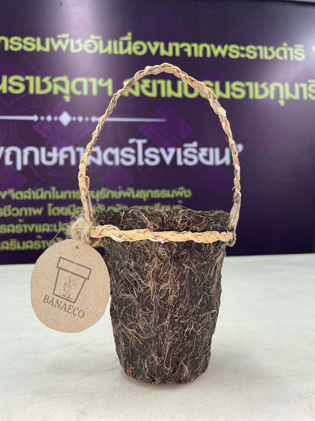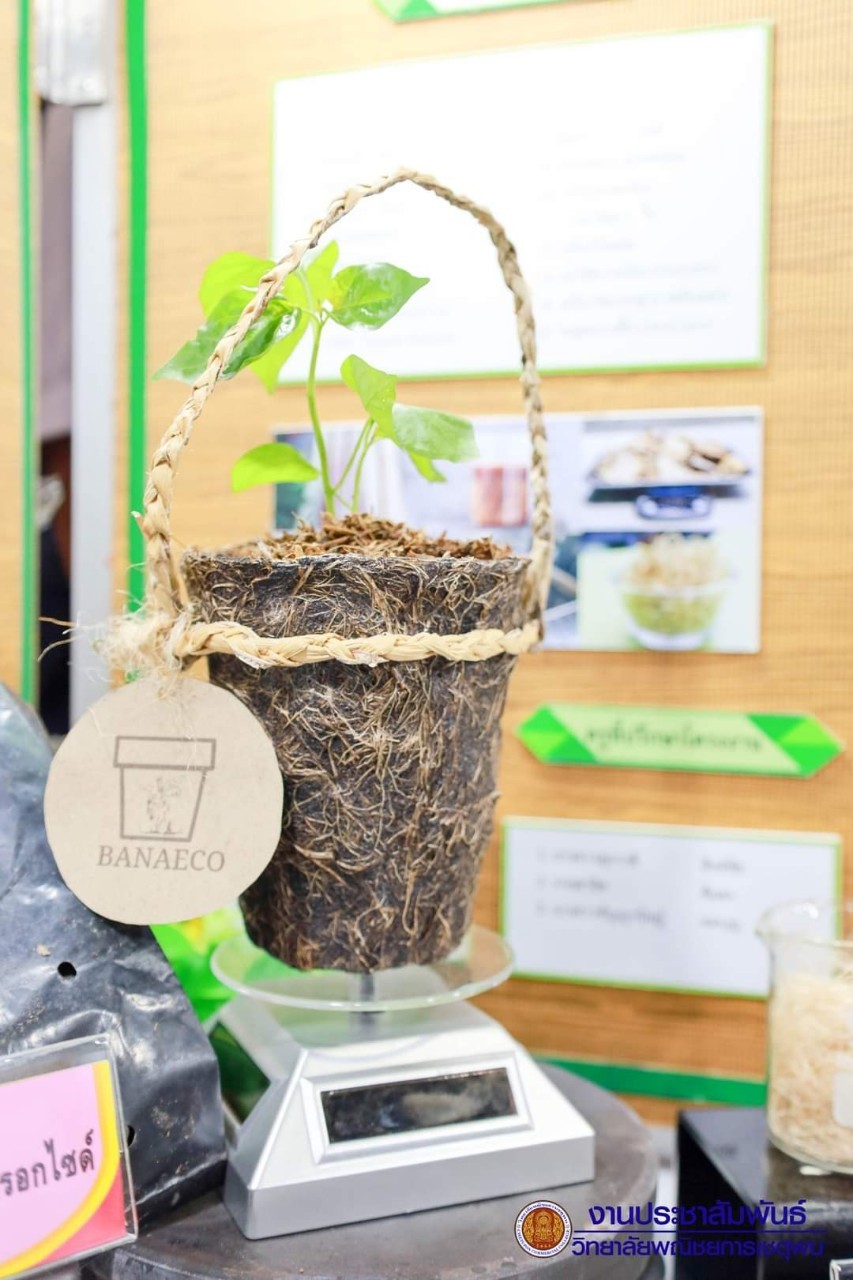This is a biodegradable seedling pot made from natural waste materials rich in N, P, and K nutrients. It consists of banana plant fibers, banana peel, coffee grounds, and is enriched with the microorganism Bacillus megaterium, which helps break down soil nutrients for better availability to the plants. This enhances the seedling’s ability to absorb necessary nutrients and provides antifungal properties. The pot’s strength is further improved with pectin extracted from pomelo peel, which is used