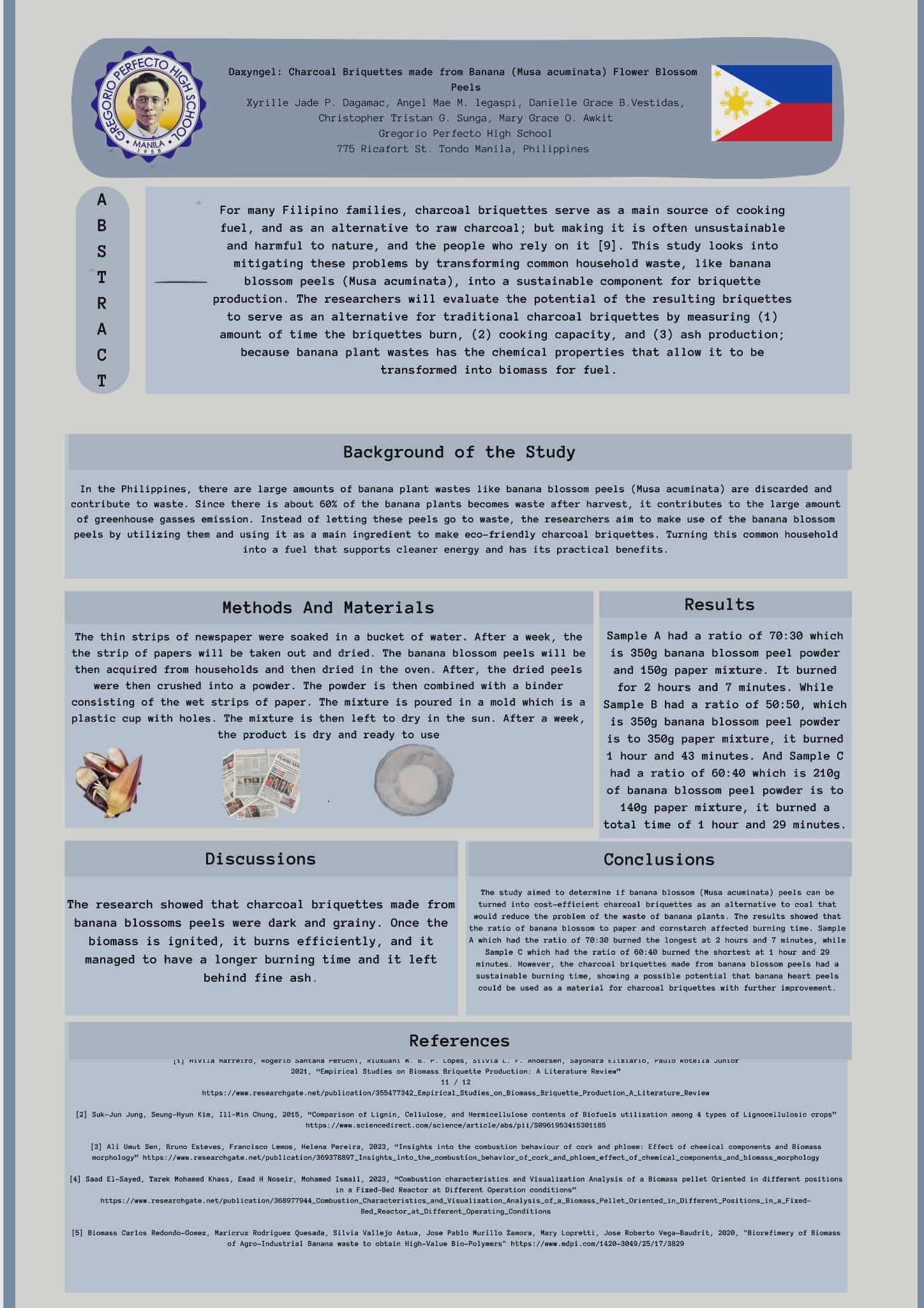 DaXyngel: Charcoal Briquettes made from Banana flower peels (Musa acuminata)