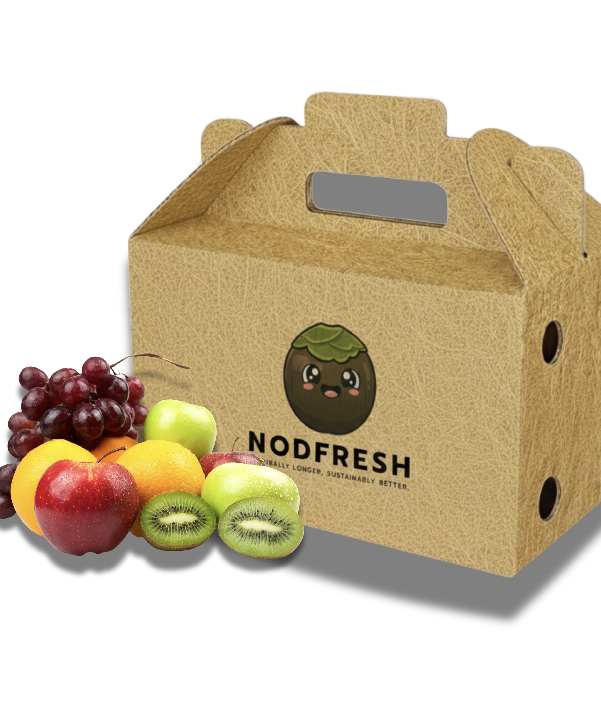Palmyra palm fibers, rich in cellulose, lignin, hemicellulose, and natural antimicrobial phenolics, are transformed into biodegradable fruit packaging. The porous structure allows airflow, controls moisture, and slows ripening, naturally extending fruit shelf life. This innovation reduces palm husk waste, limits air pollution from burning, decreases single-use plastic, supports local income, and aligns with SDGs on sustainability, climate action, ecosystem protection, and economic growth.
