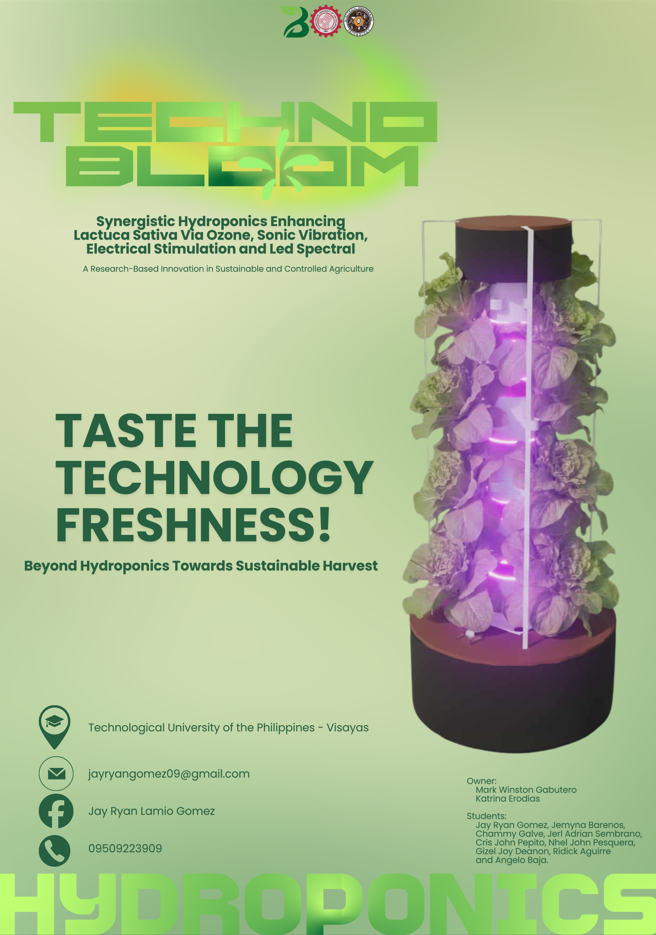 The invention focuses on exploring innovative methods to enhance lettuce growth in a hydroponic system. It involves four modern techniques: ozone for water purification, buzz or sound vibration for stimulation, bloom through electrical stimulation for root development, and LED lights as artificial sunlight.
