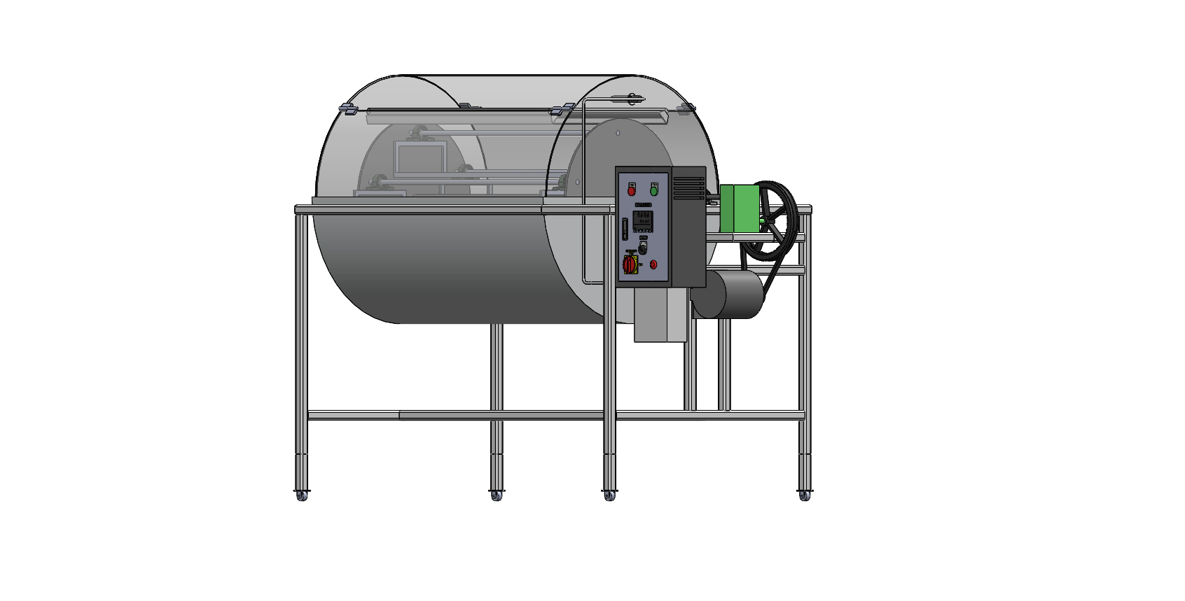 This invention introduces a high-efficiency hybrid dryer designed specifically for premium cocoa bean processing. Addressing the limitations of traditional sun drying—weather dependency and contamination risks—this system integrates Solar Thermal Energy (via a parabolic acrylic dome) with an auxiliary Far-Infrared Radiation (FIR) system. A key innovation is the "Ferris Wheel" Rotary Circulation mechanism, which circulates the beans through the heating zone without tumbling. This technique ensure
