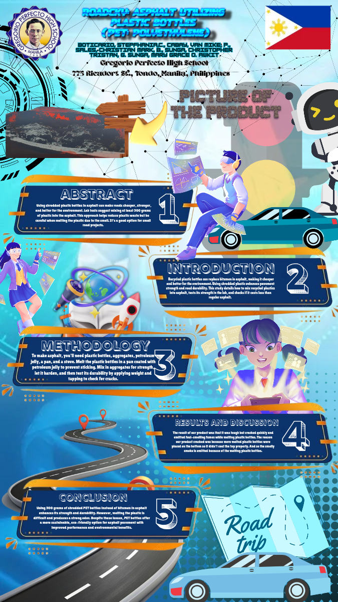 This project introduces Roadcky, an asphalt mixture that uses shredded plastic bottles as a substitute for bitumen to create a more eco-friendly and affordable road material.