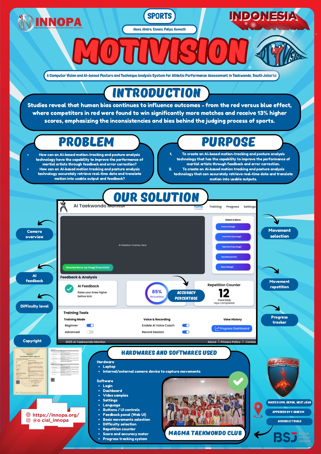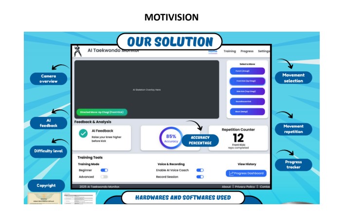 MotiVision, a computer vision and AI-based system designed to provide objective, data-driven evaluation of athletic performance, with a primary focus on taekwondo. The system integrates pose estimation algorithms, machine learning classification, and real-time feedback mechanisms to analyze movement accuracy and technique precision. By combining models such as MediaPipe Pose, MoveNet, and OpenPose, MotiVision is capable of detecting body keypoints, calculating joint angles, etc.