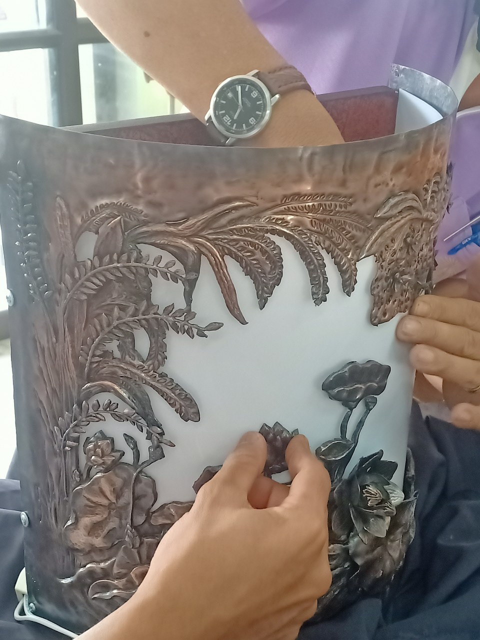 The "Lamp of Natural Illumination" project extends the traditional chasing and repoussé (สลักดุน) skill by integrating it with modern technology (solar cells and smart controls).This effort transforms the handicraft into a Functional Lifestyle Product, emphasizing practical, eco-friendly utility. It serves to modernize the curriculum, increase economic value, and disseminate the heritage of the Royal Gold Craftsmen.
