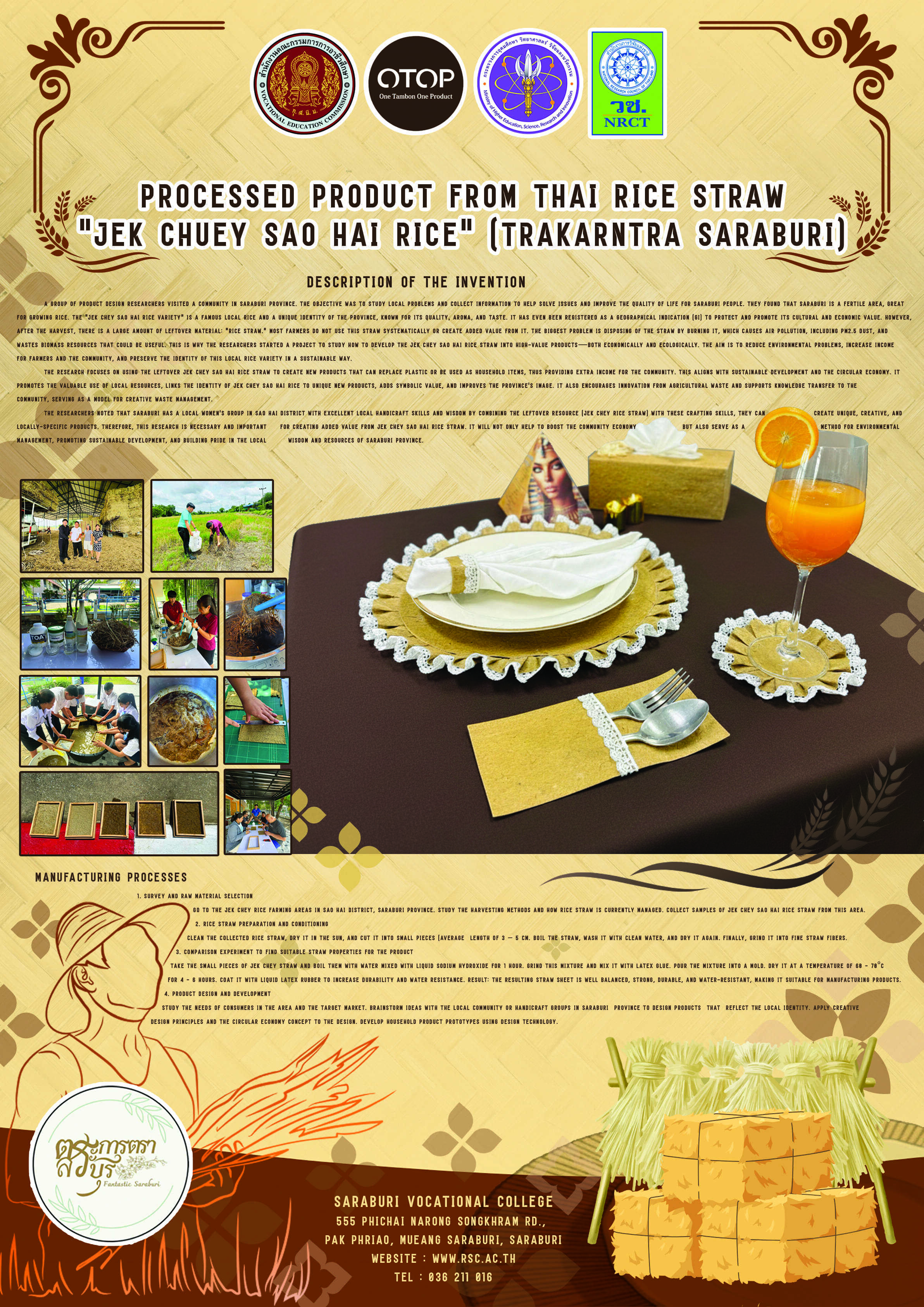 A group of product design researchers visited a community in Saraburi Province. The objective was to study local problems and collect information to help solve issues and improve the quality of life for Saraburi people. They found that Saraburi is a fertile area, great for growing rice. The "Jek Chey Sao Hai rice variety" is a famous local rice and a unique identity of the province, known for its quality, aroma, and taste. It has even been registered as a Geographical Indication (GI) to protect