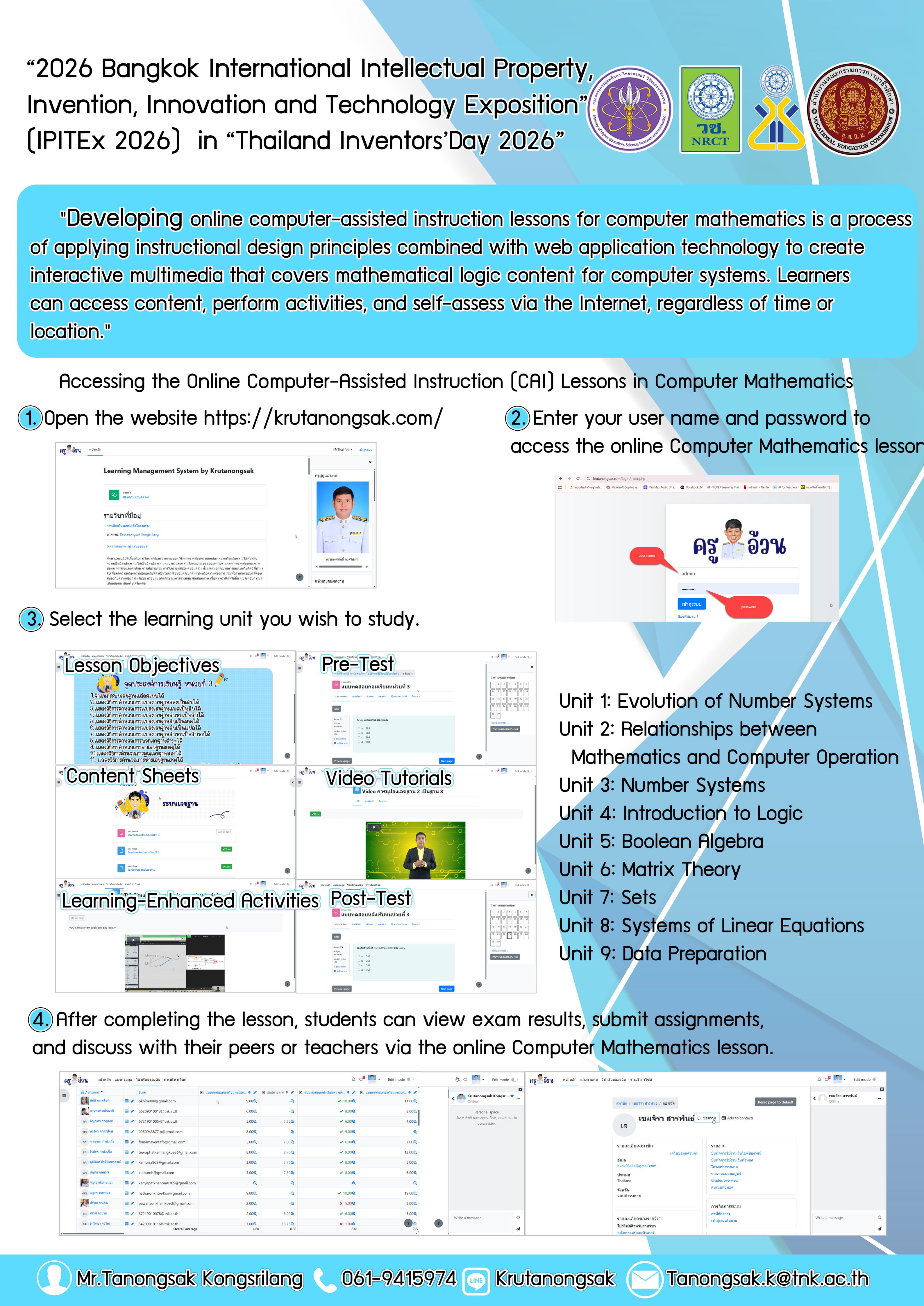 "Developing online computer-assisted instruction lessons for computer mathematics is a process of applying instructional design principles combined with web application technology to create interactive multimedia that covers mathematical logic content for computer systems. Learners can access content, perform activities, and self-assess via the Internet, regardless of time or location.