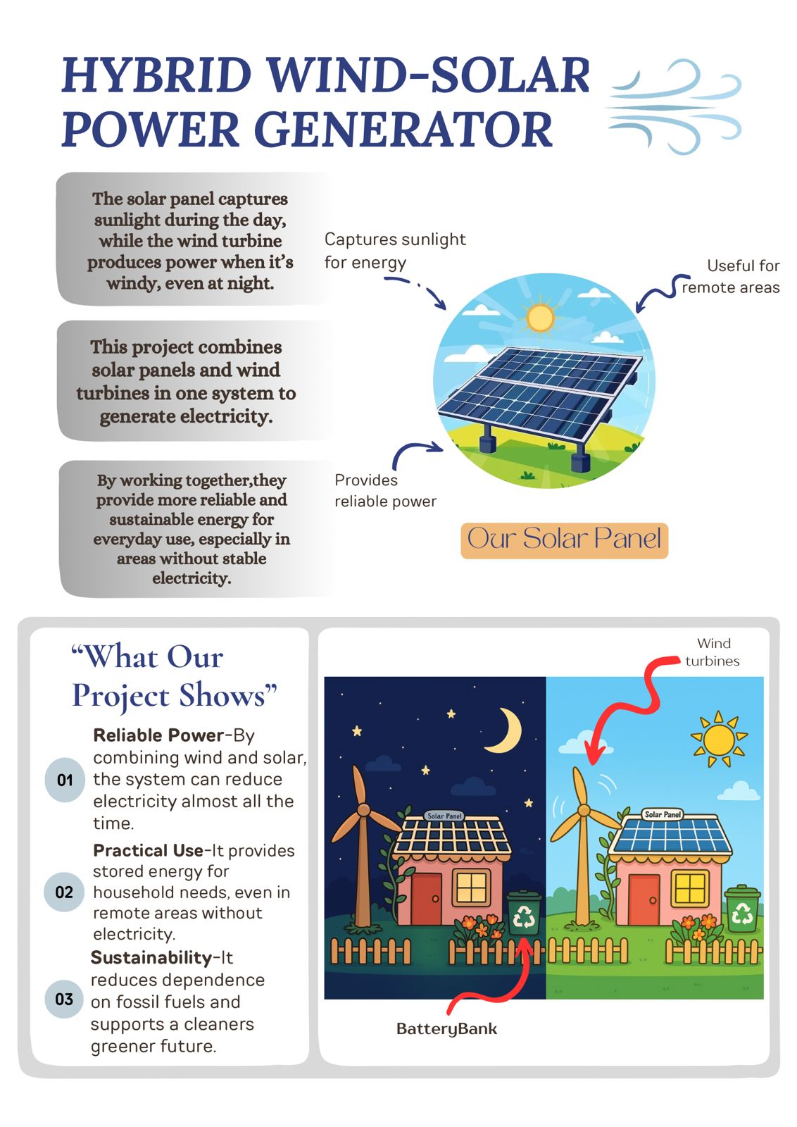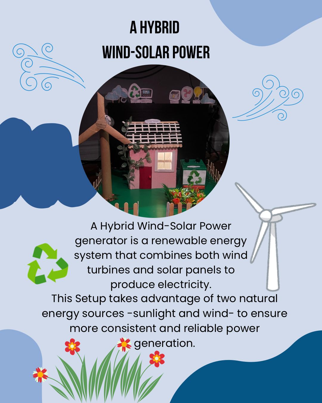 A Hybrid wind-solar generator is a renewable energy system that combines both wind turbines and solar panels to produce electricity. This set up takes advantage of two natural energy sources- sunlight and wind to ensure more consistent and reliable power generation.