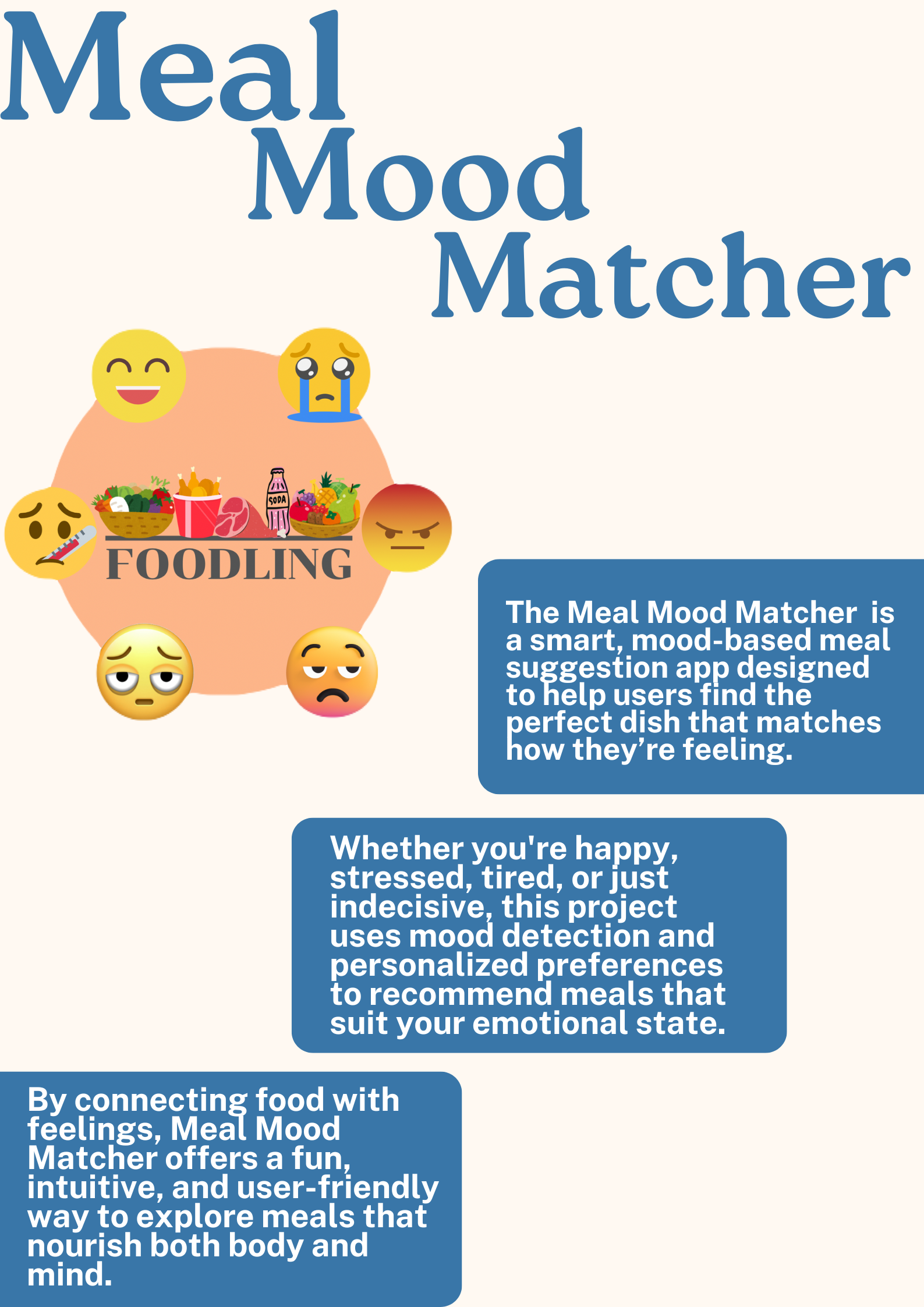 The Meal Mood Matcher is smart , mood-based meal suggestion app designed to help users find the perfect dish that matches how they are feeling. Whether you're happy, stressed, tired or just indecisive, this project uses mood detection and personalized preferences to recommend meals that suit your emotional state.