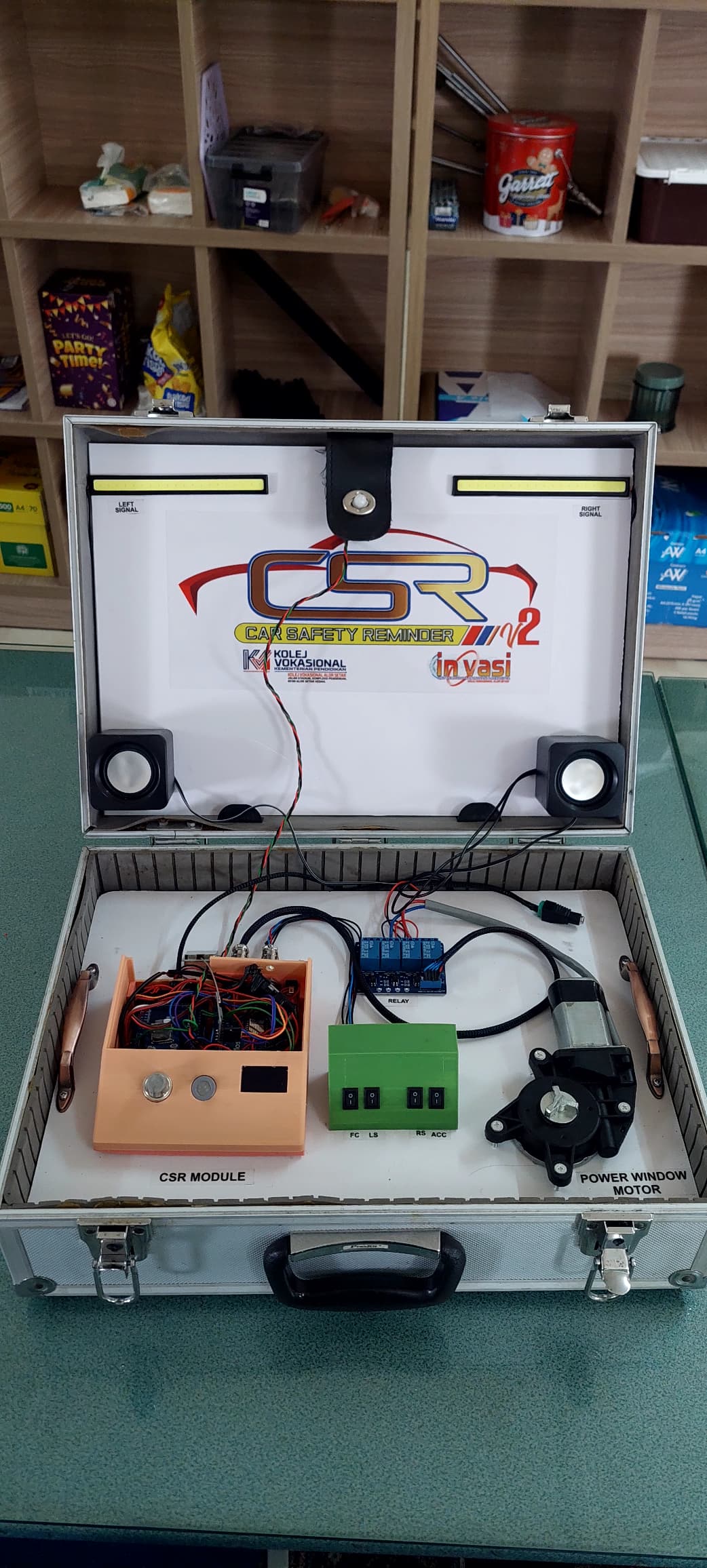 Incidents such as vehicle fires during refueling, fatalities from carbon monoxide poisoning and child deaths due to being left in vehicles continue to occur despite various public awareness campaigns. The Car Safety Reminder (CSRv2) is an innovation designed to address these issues by automatically shutting off the engine when the fuel cap is opened, detecting and alerting dangerous carbon monoxide levels, and warning if living beings remain in the cabin after the driver’s door is locked.