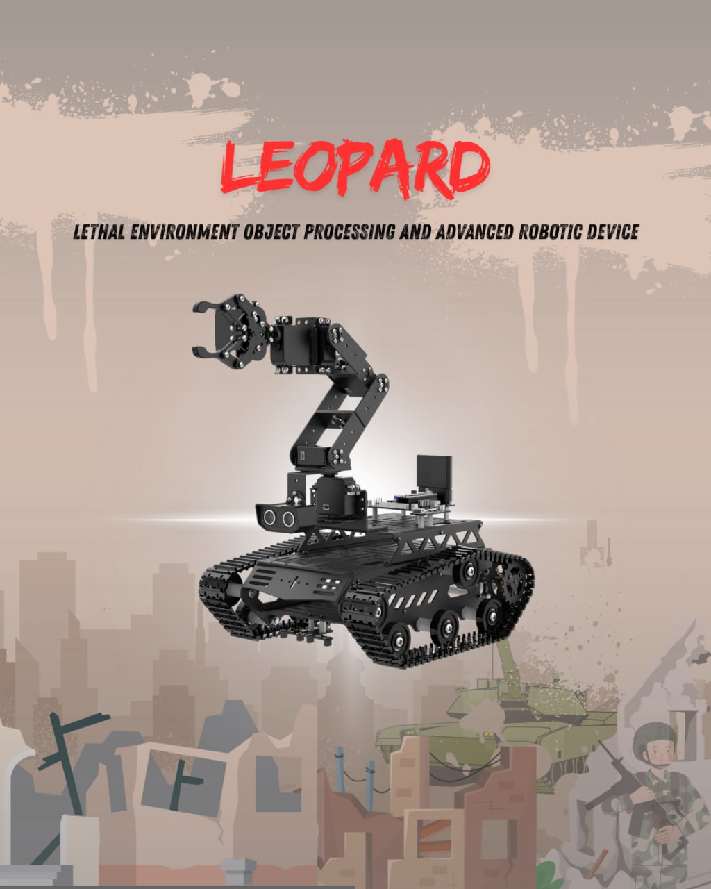 The invention, named LEOPARD (Live Environment Operated Processing and Advanced Reconnaissance Droid), is a military-grade, remote-controlled robotic tank designed to assist in the safe retrieval of dangerous objects such as unexploded ordnance and improvised explosive devices during military field operations. It integrates a robotic gripper for object manipulation, a suite of environmental sensors for situational awareness, a high-resolution camera for real-time monitoring, and a Virtual Realit