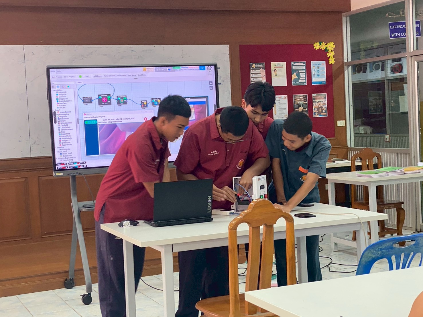 This intelligent smoke and flame detection system uses a Raspberry Pi board as an AI processing unit connected to an MQ-2 smoke sensor to detect abnormalities. If smoke or fire is detected, the system sends a signal to a relay to activate an alarm and a red warning light, while also displaying a message on the LCD screen to immediately alert the user. The system can also connect to the internet via Wi-Fi and send warning messages to Telegram for mobile notifications. a camera capture.