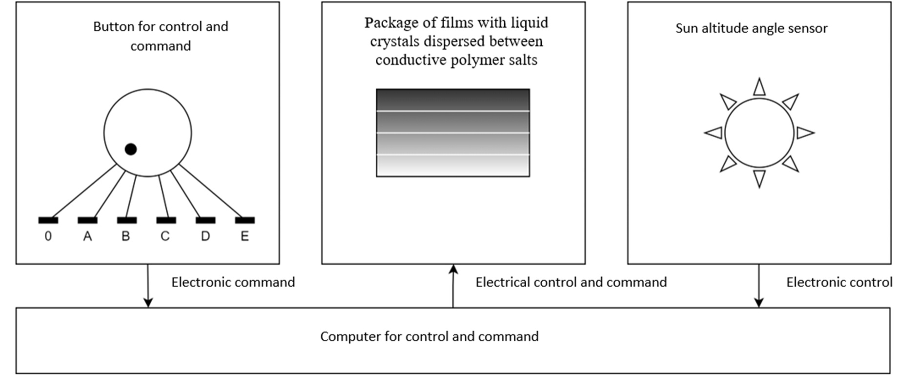 The sunshade system with dynamic adjustment for vehicle windshields involves gradually controlled shading, in the vertical plane of the windshield, by progressively powering the elements arranged in layers in a package of films, transparent when not powered and opaque when powered, both manually, depending on the user's wishes, and automatically, depending on the elevation angle of the sun and the vehicle relative to the horizontal plane, so as to provide a distinct alternative for creating suns